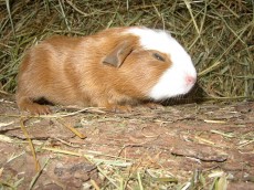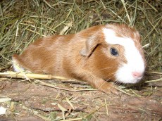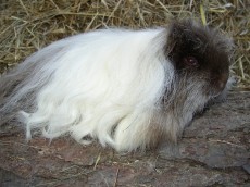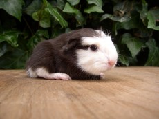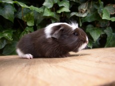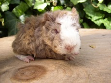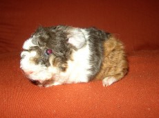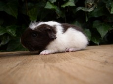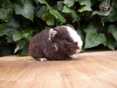 Sameček texel čoko-bílý,krásná ouška s pp,porod.váha 92gr,asi zůstane doma.